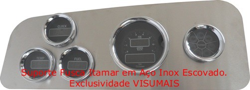 Suportes para fusca Itamar com quatro buracos de 52mm e um buraco de 85mm. O suporte é feito com uma uma liga de aço inox AISI304 escovado que tem como caracteristicas uma boa dureza, não é magnética e excelente qualidade. Ã‰ uma das melhores ligas de aço que tem no mercado. O acabamento escovado deixa a peça mais limpa, pois não fica tão visivel poeira e marca de dedos, etc.