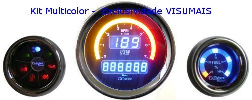 KIT PAINEL FUSCA PERSONALIZADO - Composto por 3 instrumentos: Multifuncional 85mm MF-70 STREET com leds do rpm amarelos e vermelhos Apresenta leds progressivos a rotação do motor em RPM. O sensor para giro é opcional e pode ser instalado na bobina de ignição ou nos cabos de vela (ver SG-10, indutivo), sem interferência no veículo. CARACTERÍSTICAS -Circuito eletrônico com microprocessador, usando tecnologia SMD, resultando em mais confiabilidade, durabilidade e mais recursos ao usuário; -Não contém peças mecânicas sujeitas a desgastes e aferições periódicas -A utilização de mostrador digital permite visualização rápida; -Indicado para montagem em painéis ou suportes/copos automotivos; -Fabricado com o diâmetro de 85mm; -Alimentação: 8 a 15VDC; -Para veículos carburados ou injetados; -Para motores de 1, 2, 4, 6, 8, 10 ou 12 cilindros, gás, gasolina, álcool ou diesel; -Proteção quanto a inversão de polaridade da alimentação; -Sensores inclusos ou não, para sua comodidade e menor custo; -Inclusos: Sensor SV-10 com ímã e manual. Indicador de combustível IC-30 STREET 52mm Indica o nível de combustível disponível no tanque/reservatório. Pode ser usado em diferentes tipos de veículos. Usa como sensor, o sistema de bóia original do veículo ou adaptado de outro veículo. A bóia deve ser com sinal resistivel (0 a 500 ohms). CARACTERÍSTICAS -Circuito eletrônico com microprocessador, usando tecnologia SMD, resultando em mais confiabilidade, durabilidade e mais recursos ao usuário; -A utilização de mostrador digital permite visualização rápida; -Indicado para montagem em painéis ou suportes/copos automotivos-icluso copo cromado -Fabricado com o diâmetro de 52mm; -Alimentação: 8 a 18VDC (para veículos 12V) e 20 a 32VDC (para veículos 24V usando o Redutor de Tensão RT-1); -Para motores a gasolina, álcool e diesel; -Indica o nível em percentual aproximado do tanque cheio. (Ex.: 100% = Tanque cheio, 50% = Tanque na metade.); -Proteção quanto a inversão de polaridade da alimentação; -Sensor não incluso, porém é usado o sensor do próprio veículo. Indicador de sinais IS-10 STREET Indica através de símbolos as funções como: Pisca alerta (verde); Sinaleira esquerda (verde); Sinaleira direita (verde); Farol alto (azul); Pressão do óleo (vermelho); Bateria (vermelho); Nível de óleo de freio(vermelho); Reserva de combustível (amarelo). CARACTERÍSTICAS -Não contém peças mecânicas sujeitas a desgastes e aferições periódicas; -Indicado para montagem em painéis ou suportes/copos automotivos; -Fabricado com o diâmetro de 52mm; -Alimentação: 8 a 14VDC; -Novo sensor de reserva de combustível para motos; -Programável para diferentes tipos de veículos / motos; -Proteção quanto a inversão de polaridade da alimentação; NOTAS: - Consulte o adaptador de 100mm ou 140mm - Consulte o filtro de giro para motor com platinado - Compatível com qualquer outro veículo. O kit não é exclusivo para fuscas. - Os instrumentos são fornecidos na seguinte configuração: Moldura: cromada, painel: preto, leds/displays/iluminação azuis Os leds do rpm são AMARELOS de 0 até 3000rpm e leds VERMELHOS de 3000rpm até 7000rpm. Os leds do marcador de combustível são VERMELHOS nos três primeiros leds. Para outras configurações consulte-nos principalmente do kit com vedação total conta água. - Em caso de dúvidas consulte-nos antes de comprar. |