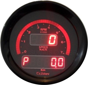 Apresenta leds progressivos, a rotação do motor em RPM e em formato digital: a velocidade e o odômetro total e parcial (outras possibilidades, sob consulta). O sensor opcional para giro pode ser instalado na bobina de ignição ou nos cabos de vela (sensor SG-10 indutivo), sem interferência no veículo. Os velocímetros permitem avaliar baixas velocidades com precisão.