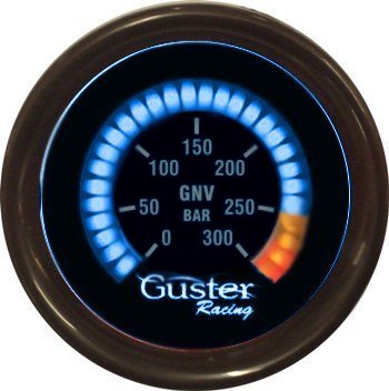 Indica a pressão do gás no reservatório de GNV (Gás Natural Veicular). Escala de 0 a 300 BAR. Temos sensor eletrônico de alta confiabilidade (durabilidade e precisão) (SPR-300). É sensor eletrônico, não é resistivo, não tem peças mecânicas sujeitas a desgastes, imprecisão, descalibração durante sua vida útil. Tempo de vida do sensor : cerca de 15 anos. Sensor instalado no cilindro, interligado por cabo ao instrumento instalado no painel do veículo, evitando acidentes com tubulação de gás. (Consulte-nos).