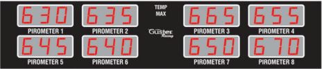 Combinação de oito pirômetros em um único instrumento. Permite avaliar simultaneamente até 8 cilindros. Tem memória de pico de temperatura atingido e alarme programável para cada um dos oito pirômetros.