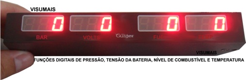 Gabinete retangular com funções digitais: - Pressão (turbo, combustível ou óleo) - Tensão da bateria - Nível de combustível - Temperatura do água ou óleo Consulte-nos sobre as possibilidades que atendam suas necessidades. Produto sob encomenda, consulte-nos).
