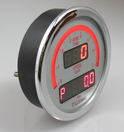 Indica a velocidade do veículo e quilometragem percorrida em formato digital(display)e conta giros em leds progressivos 7000RPM. Pode ser usado em diferentes tipos de veículos. O sensor opcional pode ser instalado na roda, sem contatos mecânicos. Os velocímetros permitem avaliar baixas velocidades com precisão. Temos modelos de velocímetros que permitem opcionais como: odômetros parciais/total, alarme sonoro, spot-light para limites de velocidade e diferentes tipos de sensores para as mais diversas aplicações. Veja os demais modelos e seus opcionais.