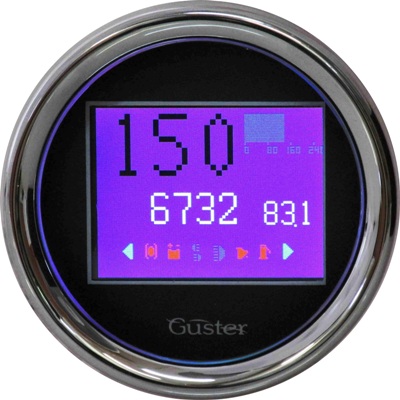 -Circuito eletrônico com microprocessador, usando tecnologia SMD, resultando em mais confiabilidade, durabilidade e mais recursos ao usuário; -A utilização de mostrador digital em tela de cristal líquido permite visualização rápida e precisa; -Brilho ajustável. -Oito opções de cores de fundo e fontes selecionáveis; -Não contém peças mecânicas sujeitas a desgastes e aferições periódicas; -Indicado para montagem em painéis ou suportes/copos automotivos; -Fabricado com o diâmetro de 85mm. Adaptável em suporte/copo automotivo de 85mm; -Alimentação: 8 a 18VDC, para veículos 12 Volts. Para 24 Volts ou outras redes elétricas, ver opcionais; -Para veículos carburados ou injetados; -Para motores de 1, 2,4, 6, 8, 10 ou 12 cilindros, gás, gasolina, álcool ou diesel; -Proteção quanto a inversão de polaridade da alimentação; -O sensor opcional Guster (SG-10, indutivo) acoplado ao cabo de velas facilita a instalação.