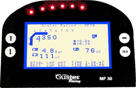 Apresenta em formato digital: a rotação do motor (em RPM) em barras progressivas, Shift Light Progressivo, temperatura de água e óleo, marcha, velocidade, tempo de melhor volta, cronometragem de volta (outras possibilidades, sob consulta). Estão implementadas funções de Telemetria ou alterado para atender necessidades específicas, consulte-nos. Com memória. Configurável para armazenar a partir de 4000 eventos (Ex.: 60 min, se for de 1 em 1 segundo.). Pode ser adquirido sem telemetria e sem sensores. Nossos velocímetros permitem avaliar baixas velocidades com precisão. Veja outras opções de telemetria: TM-10 e MF-20.