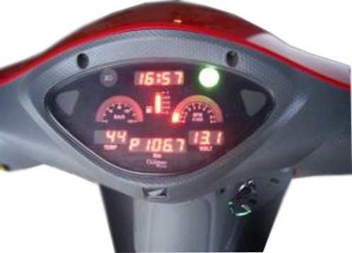 Desenvolvido para adaptar/substituir painel interno original das motos modelo BIZ-125. Para BIZ-100, e Sundown Web, ver BZ-10, BZ-20, SD-10 e SD-20. Apresenta velocímetro, conta-giros, indicador de nível de combustível em leds progressivos, odômetro com 5 digitos, indicador de temperatura, voltímetro e relógio digital. Contém adaptador para conectar o cabo do velocímetro, mantendo o cabo atual. Não estão inclusos: gabinete do painel, chicotes e sensores (ex.: bóia de combustível). O produto utiliza o mesmo gabinete e chicotes originais. Este painel pode ser usado para inúmeras aplicações, como motos, etc (ver "dimensões " abaixo). As escalas e funções podem ser alteradas de acordo com sua necessidade (consulte-nos).