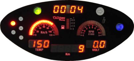 -Circuito eletrônico com microprocessador, usando tecnologia SMD, resultando em mais confiabilidade, durabilidade e mais recursos ao usuário; -A utilização de mostrador digital permite visualização rápida e bonito acabamento; -Proteção quanto a inversão de polaridade da alimentação; -O próprio usuário, com conhecimento adequado ou com auxílio de nossas revendas, pode instalar o produto; -Inclui o sensor de velocidade SV-20; -Cor de leds e displays: vermelho, azul, verde ou amarelo; -Com iluminação traseira nas escalas; -Alarme programável pelo usuário para voltímetro e temperatura; -Dimensões do circuito eletrônico: (133x83)mm. Nesse circuito estão montados os leds e displays. O Indicador de Sinais (luz alta, etc) não fazem parte do circuito; -Incluso: Sensor de velocidade SV-20 e manual.