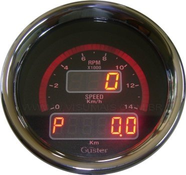 Apresenta leds progressivos, a rotação do motor em RPM e em formato digital: a velocidade e o odômetro (outras possibilidades, sob consulta). O sensor opcional para giro pode ser instalado na bobina de ignição ou nos cabos de vela (SG-10 ou SG-20, indutivo), sem interferência no veículo. Nossos velocímetros permitem avaliar baixas velocidades com precisão. Outras configurações podem ser implementadas, consulte-nos.