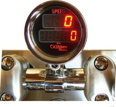 O velocímetro também funciona com o cabo de velocímetro original e para isto basta solicitar um adaptador (SV-20) em troca do sensor ou ainda funciona com o sensor eletrônico e para é necessário um divisor de freqüência (DF-10).