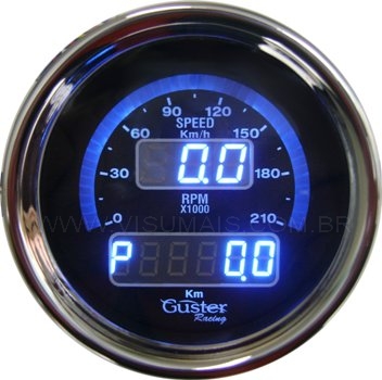Apresenta com leds progressivos a velocidade e em formato digital o giro do motor e o odômetro total e parcial (outras possibilidades, sob consulta). O sensor opcional para giro pode ser instalado na bobina de ignição ou nos cabos de vela (SG-10 ou SG-20, indutivo), sem interferência no veículo. Os velocímetros permitem avaliar baixas velocidades com precisão.
